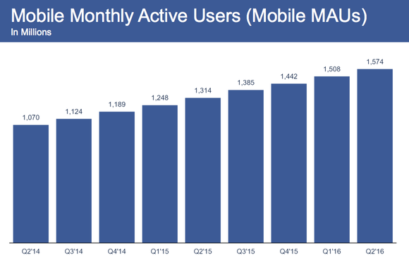 Mobile is a major driver in terms of sales growth: Advertising revenue coming from mobile devices represented nearly 84% of all advertising revenue for the quarter, up from approximately 76% in the second quarter of 2015.