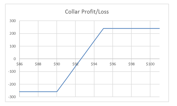 If I want to limit my risk exposure to the Federal Reserve's next interest rate decision, I could sell an October 2016 covered call with a strike price of $95, and buy an October 2016 put option with a strike price of $90. These options are trading for $1.60 and $1.70, respectively, so this trade would cost me just $10 per 100 shares to implement.
