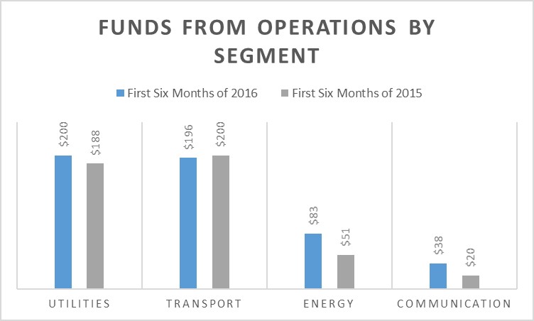 As the following chart shows, FFO in three of Brookfield Infrastructure Partners' four segments is up this year: