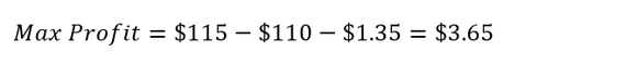 Since each options contract corresponds to 100 shares of stock, this translates to an overall maximum profit of $365, minus any trading commissions.