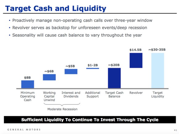 GM is prepared for a cyclical economic downturn. GM says that it will break even or turn a profit as long as the pace of auto sales in the U.S. stays about 10 million to 11 million per year. That's roughly the pace we'd expect to see at the trough of a very deep recession.