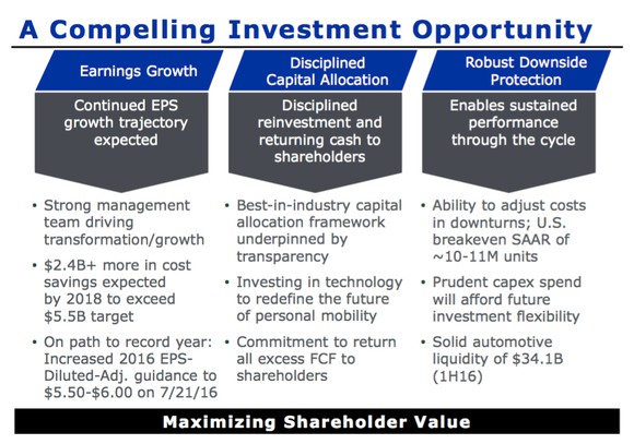 GM's overview reaffirmed the increased profit guidance that GM gave during its second-quarter earnings presentation on July 21. For 2016, GM expects to earn between $5.50 and $6 a share, up from a strong $5.02 per share in 2015.
