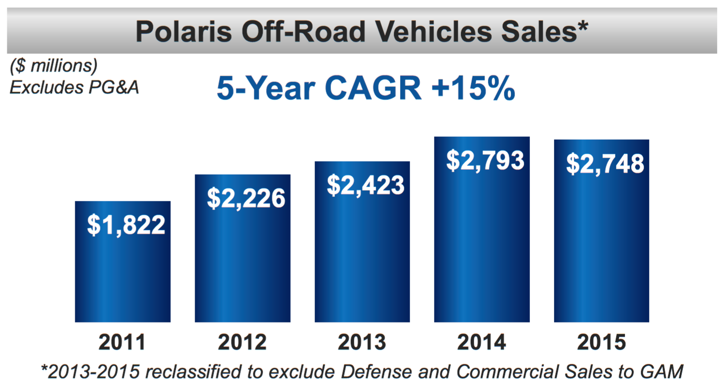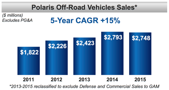 You can see below that revenue from off-road vehicles has risen nearly $1 billion in the last four years with a 5-year compound annual growth rate of 15%.