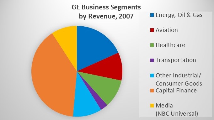 These businesses, along with GE's other financial operations, made up about half of the company's revenue in 2007: