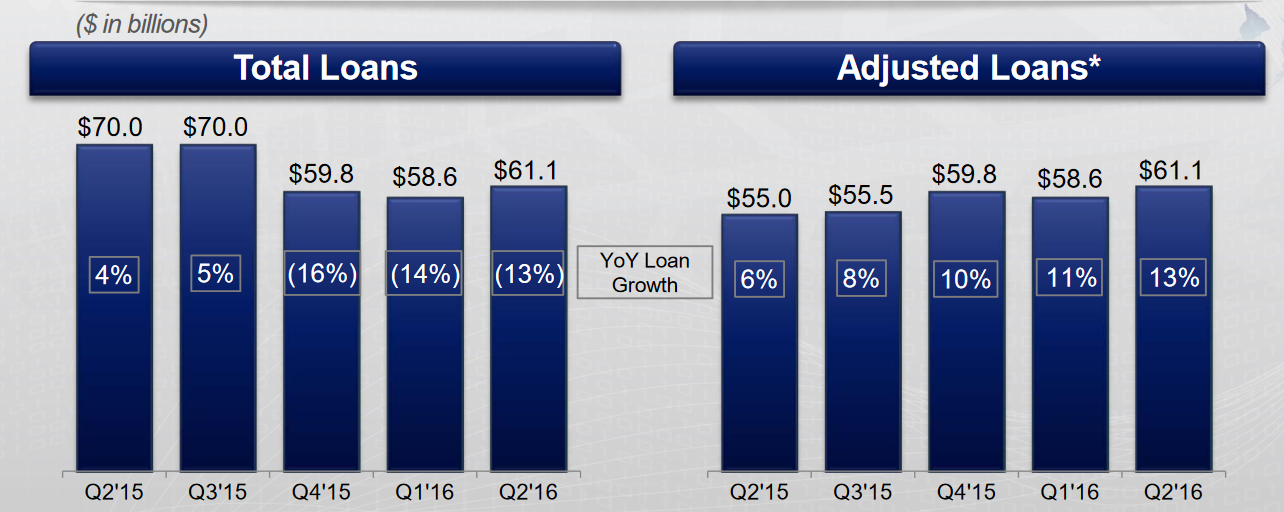 When adjusting for the loss of the Costco and other former co-branding relationships, American Express is showing nice growth in its loan portfolio. Image source: American Express.
