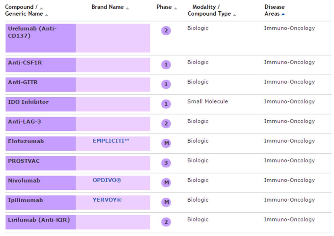 Perhaps the juiciest part of Bristol's growth story, though, is that Opdivo is far from the only immuno-oncology asset in its arsenal. Besides the already approved anti-CTLA4 antibody Yervoy, Bristol's clinical pipeline is chock-full of compelling, high-value immuno-oncology product candidates and possible label expansions for already approved products: