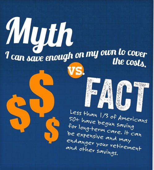 The sad reality is, most people aren't prepared, with less than one-third of people over 50 having even begun saving for long-term care. The out-of-pocket costs can be significant, too. Even short-term, in-home, unskilled care for a few hours per day can easily cost thousands of dollars per month.