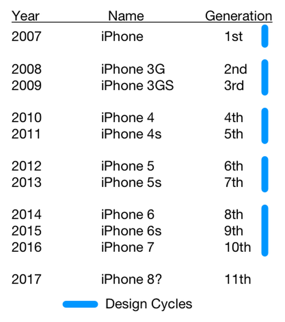 That would have normally presented a dilemma for 2016, since for the first time this year's model used the same overall design for the third year running. But since "iPhone 6SS" is just plain absurd, Apple went ahead and added a number. But what does Apple do next year, when it is expected introduce a redesigned iPhone that is potentially made of glass and features a wraparound OLED display?