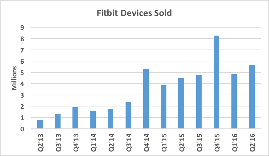 Seeing a 2016 decline would be disheartening for Apple's first new product category since the iPad, and would really underscore how important it is to appeal to the mainstream consumer. Fitbit (FIT +0.00%) still leads the market in terms of basic fitness tracking at affordable price points. Fitbit's unit sales are definitely heading the right direction.
