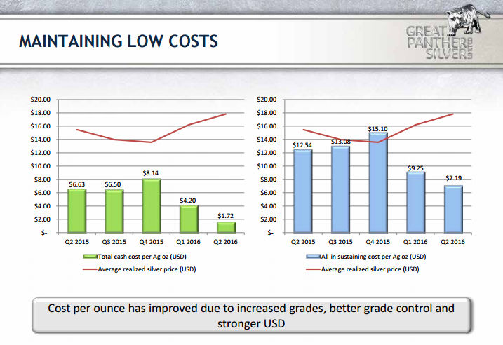 So Great Panther Silver's shares have advanced more than some of the bigger names in the space. A big piece of that can be attributed to its solid financial position, declining costs, and rising production, in addition to the precious metals rally. And to the fact that the miner is getting much closer to turning a profit....