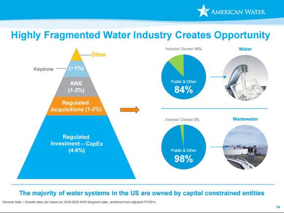 The highly fragmented industry is one factor that should help American Water achieve its goal of a 7% to 10% earnings per share compounded annual growth rate from 2016 to 2020 (anchored by adjusted 2014 EPS). Image source: American Water.