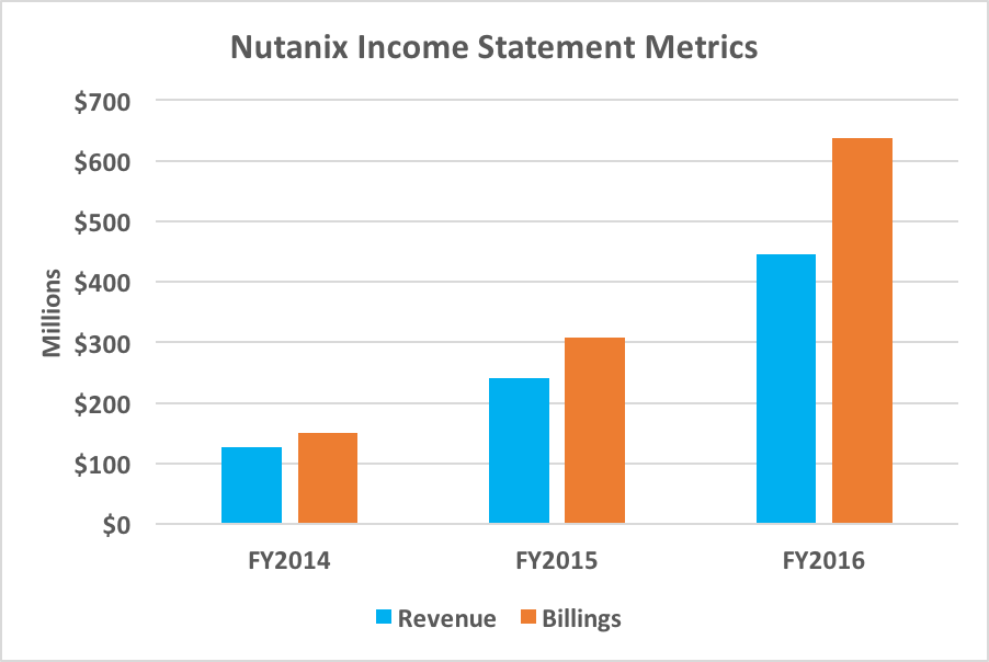 Margins are expanding as well as operating leverage kicks in. Adjusted gross margin in fiscal 2016 was 62%, up from 52% in fiscal 2014. Since Nutanix is investing heavily in sales and marketing as well as research and development, it currently operates at a loss ($165 million operating loss in fiscal 2016). This isn't unexpected for a high-growth tech IPO.