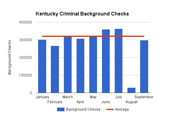 What they missed was an anomaly in the state-by-state numbers the FBI also publishes showing Kentucky, which typically averages about 320,000 checks per month, recorded less than 30,000 in August. That was because the FBI was undergoing a big computer upgrade and rather than scanning its entire database of gun permit holders as it usually does, it only reported new applications. The state's numbers rebounded in September as the state police said they would, with just under 300,000 criminal investigations reported for the month.