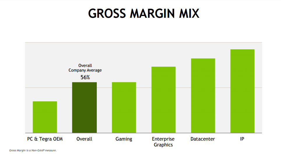 The products that NVIDIA sells in this segment are extremely lucrative. According to an NVIDIA investor presentation from last year, the company's data center products carry significantly higher gross profit margins relative to its corporate average: