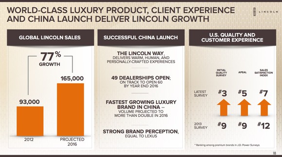 What's clear is that the marketplace is responding. In the last 4 years, our sales are up almost 80%. We've had a very strong reaction in China, where we introduced the brand [in late 2014]. And actually, Lincoln's brand image is equal to Lexus in China.