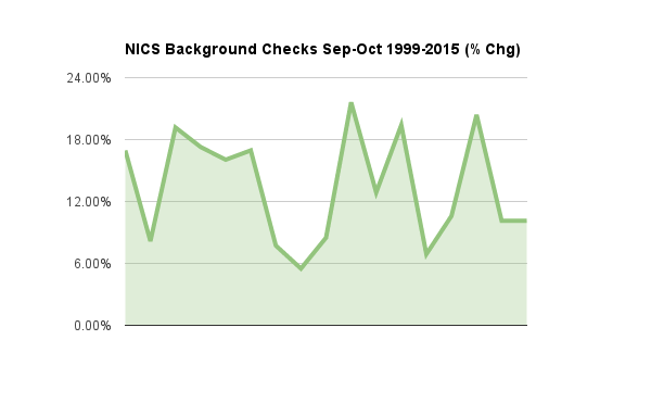Examining FBI records, you can see that almost every year for the past six years, the number of background checks performed have been lower in September than they were in August. Only last year were the number of investigations higher, but if you look at what was happening then, it quickly becomes understandable why that was the case.