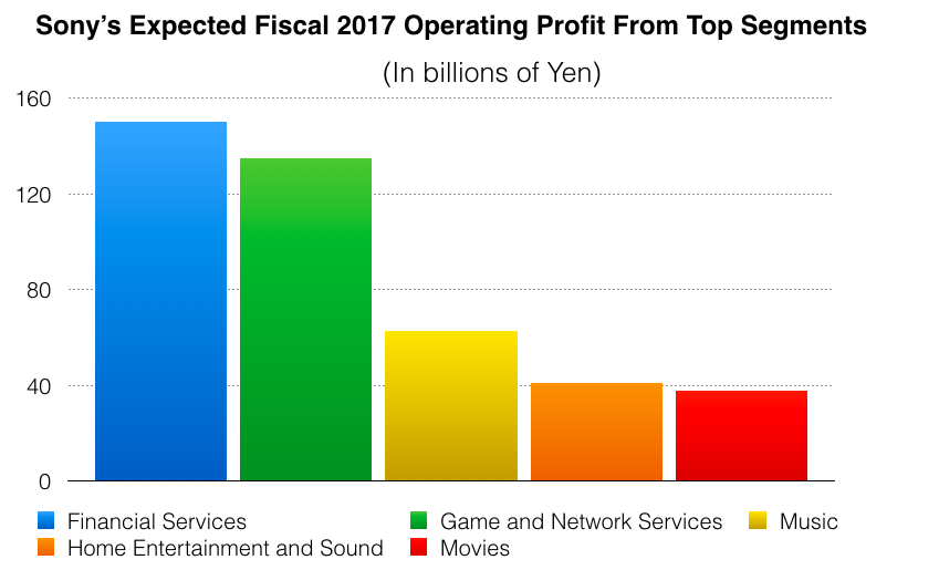 Here's a look at the Sony's most profitable segments, according to Sony's 2017 estimates: