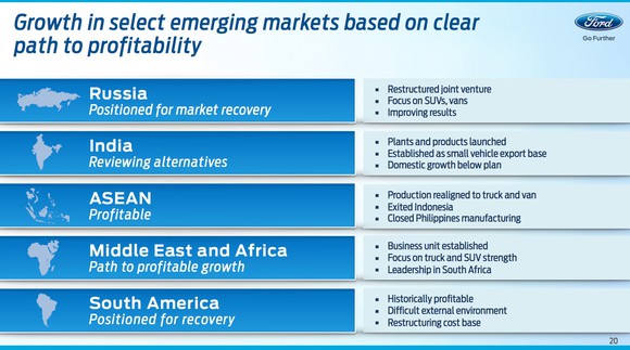 Ford Motor Company (F +1.58%) CEO Mark Fields has made it clear that boosting the Blue Oval's effort in emerging markets is a "strategic priority." But not all emerging markets have the same priority.