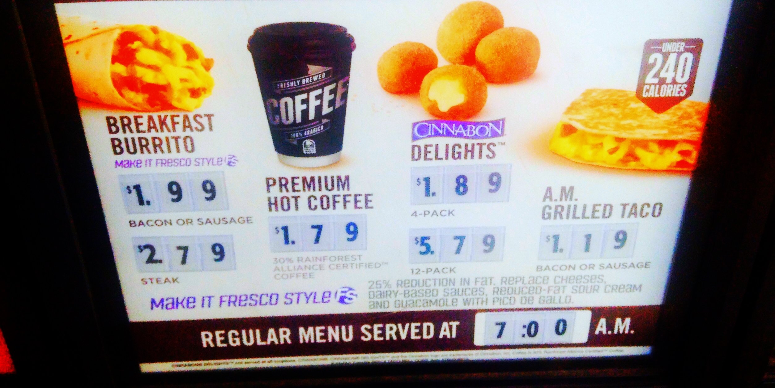 Editors Note: After this article was printed Taco Bell denied that it was testing all-day breakfast. Instead, while Taco Bell has been offering "$1 menu items all day, which includes breakfast options during certain hours as well as lunch/dinner options, breakfast is not served all day,” a company spokesperson told Motley Fool.
