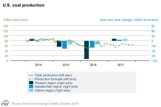 Driving the concerns surrounding future sales volumes is the current forecast for the coal market. According to the U.S. Energy Information Administration's current short-term energy outlook, coal producers are expected to boost production next year after two years of deep declines:
