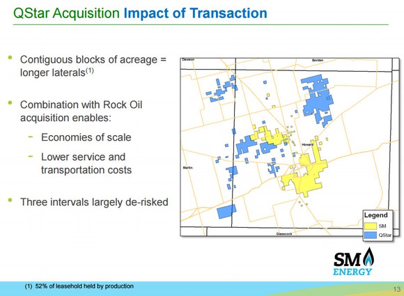 While that scale enables the companies to drive costs lower due to economies of scale, and lower service and transportation costs, it can also drive up drilling returns. In SM Energy's case, the QStar acquisition brings in acreage that is contiguous with its current position. That is crucial because it now enables SM Energy to drill longer horizontal laterals on those blocks: