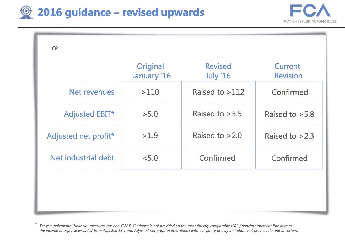 Note that FCA still expects its net industrial debt to fall below 5 billion euros by the end of the fourth quarter.