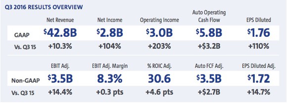 GM posted strong gains across the board compared to its results in the third quarter of last year.