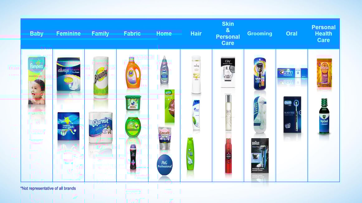 P&G's 10 core product categories. Image source: P&G investor presentation.