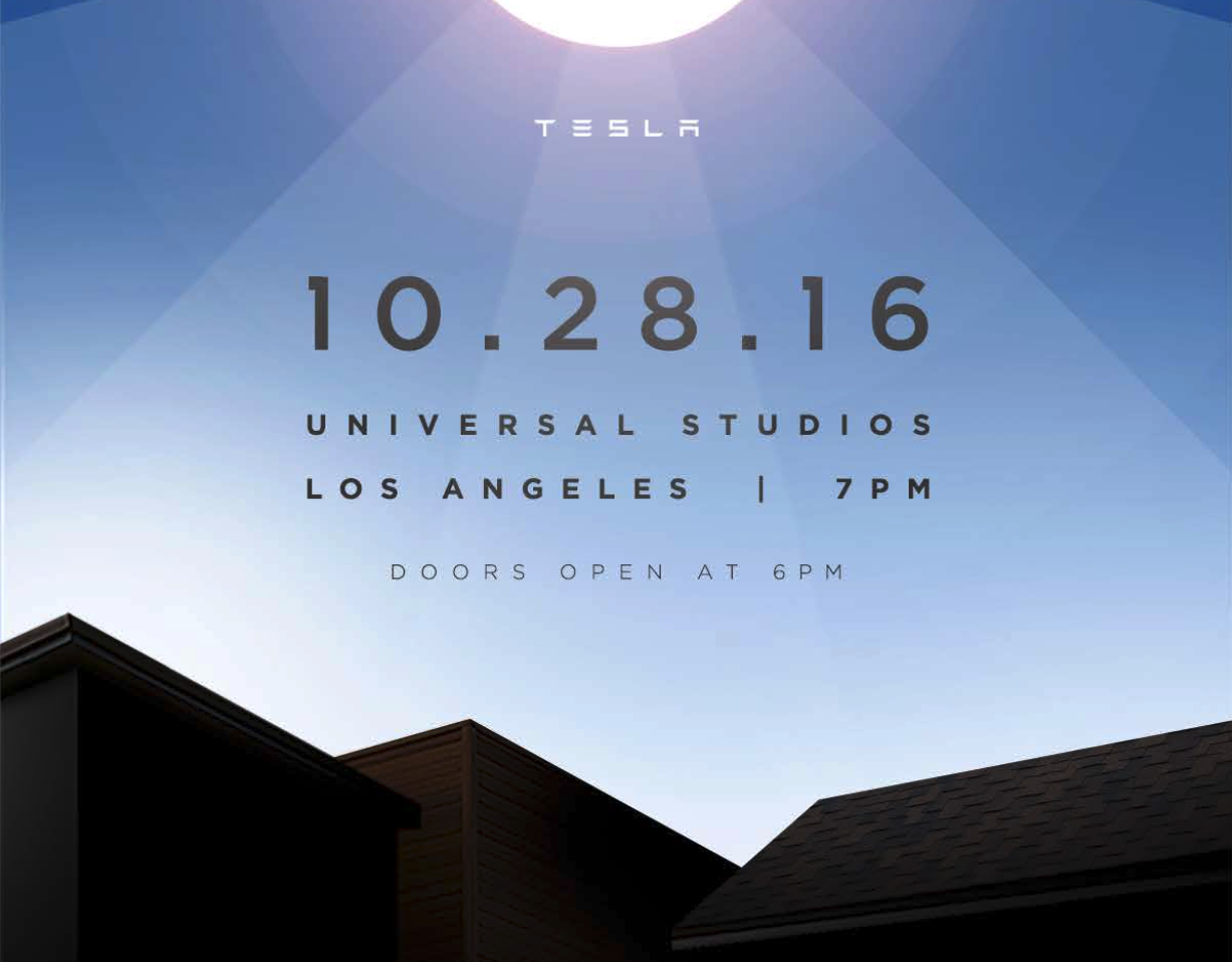 On Monday, Tesla Motors (TSLA 1.45%) sent out invitations to the press for an event on Friday. The Oct. 28 product announcement, which will take place at Universal Studios in Los Angeles at 7:00 p.m. PDT, puts an official date and time to Tesla's previously publicized plans to unveil a "solar roof" with an "integrated Powerwall 2.0 battery and Tesla charger."
