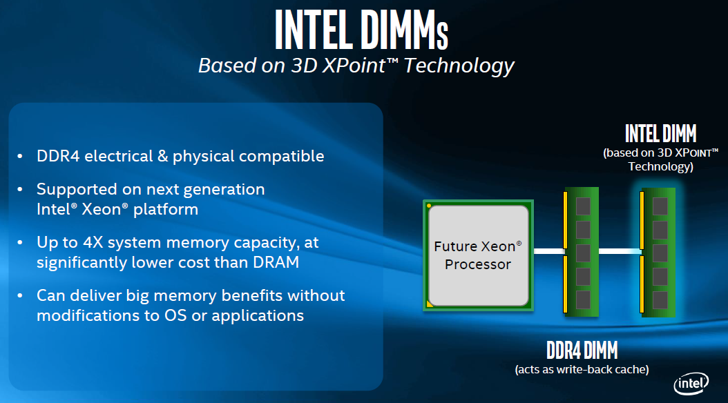 If 3D XPoint delivers what Intel claims it delivers, then there could be a significant revenue opportunity just from storage drives based on the technology. However, what Intel seems to be more excited about is the prospect of selling memory modules based on this technology to stand in for traditional DRAM.