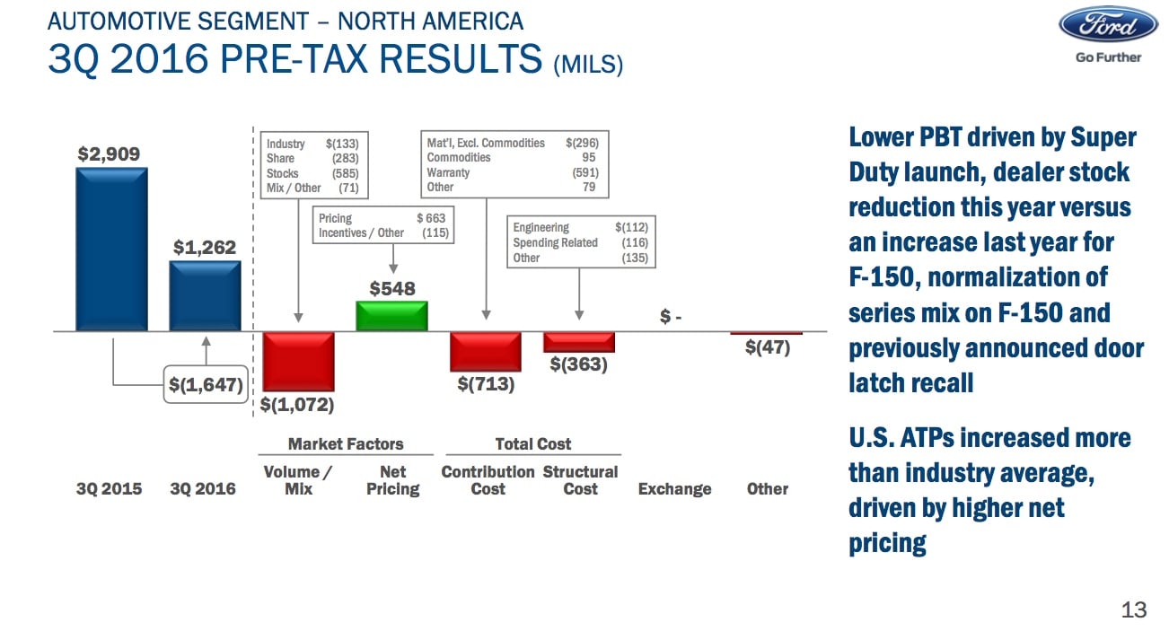 So what happened? Take a look at this slide, which "walks" from Ford's year-ago result in North America to the most recent quarter's result.