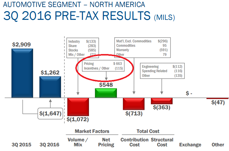 Looking at the net pricing, you can see that incentives did rise, but that increase was significantly offset by Ford's increased pricing power. That's a signal that Ford is matching its supply to demand, and is focusing on creating profitable sales at a time when customer demand is stagnating. Expect the gap between those two lines to narrow during the fourth quarter -- but definitely make a note to look at how much it narrows.