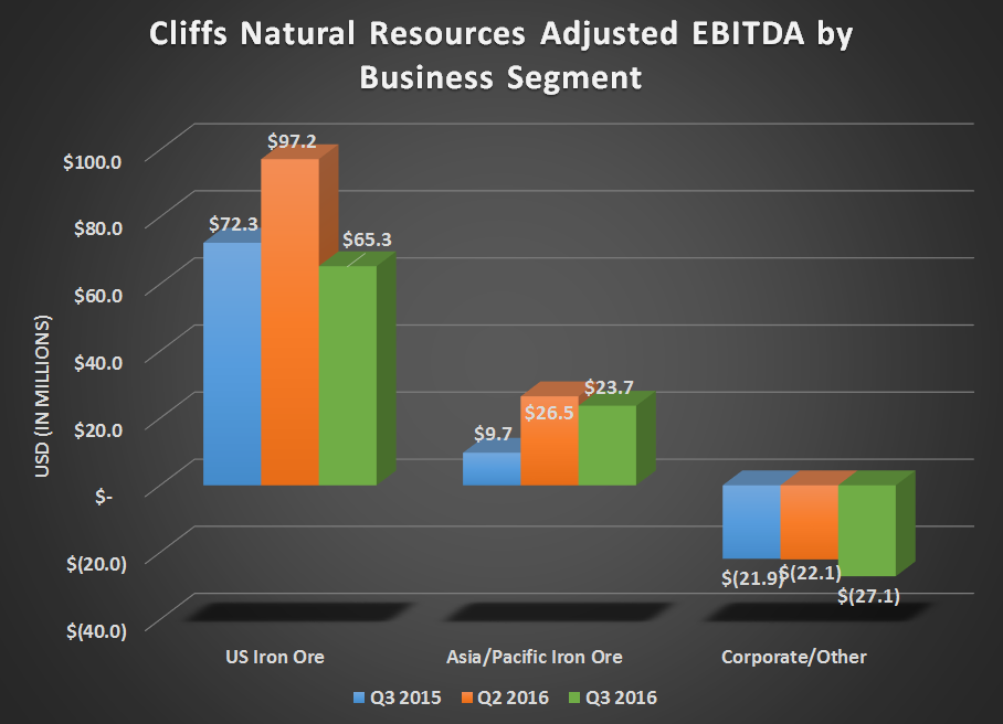 EBITDA = earnings before interest, taxes, depreciation, and amortization. Data source: Cliffs Natural Resources earnings releases. Chart by author.