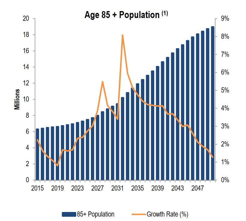 This means a greater need for senior housing facilities, which make up the majority of both REITs' portfolios.
