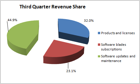 As with many companies growing software subscriptions (in this case Check Point's "software blades"), there is a short-term hit to revenue growth. In Check Point's case this is because the price of the software blade is separated from the appliance product and then recognized on the balance sheet as deferred revenue over time. CFO Tal Payne disclosed that the net effect on revenue was $6 million to $8 million; in other words, revenue growth was arguably closer to 7.6% in the quarter.