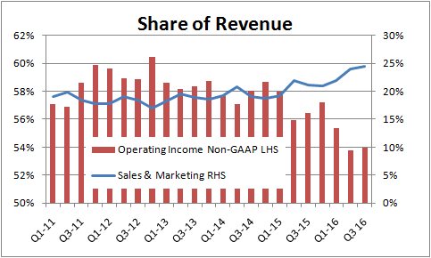 Third, revenue growth came in at 6%, but non-GAAP operating income increased just 1.1%. Why?