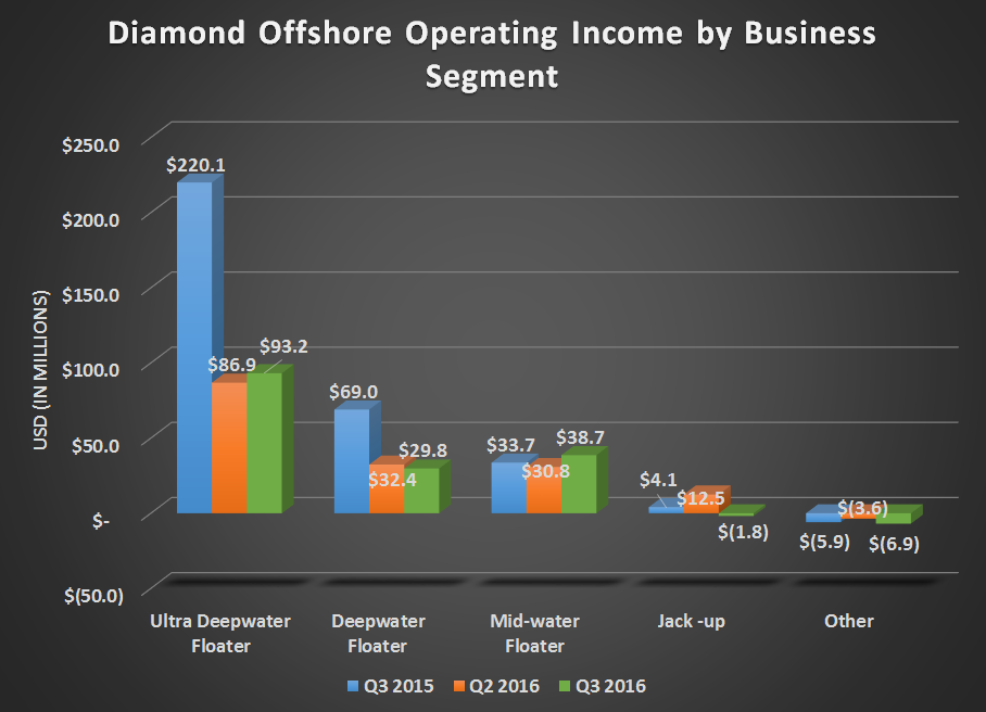 Overall, Diamond's results were quite good. Sure, we saw the expected declines in revenue from rigs coming off contract, but it didn't have as much of an impact on the bottom line as it had on other rig companies in recent quarters.