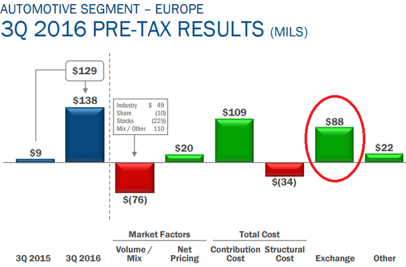 Further, if we scoot past the encouraging cost savings, we find ourselves at a positive-$88 million from favorable foreign currency exchange. Sadly, this will be a one hit wonder because Ford was mostly hedged before the U.K.'s vote in June, and that obviously will not be the case next year.