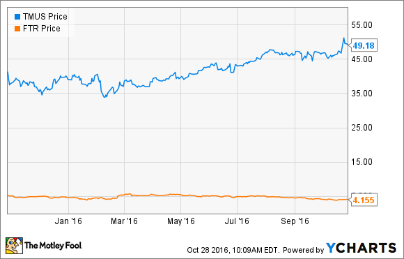 For different reasons, both Frontier and T-Mobile are acquisition targets. That's partly because the companies have a strong asset in their subscriber bases and partly because there are so few remaining companies in play in these spaces. But even without the premium an purchase would bring, a case can be made for owning T-Mobile and Frontier, but one is clearly a better buy.