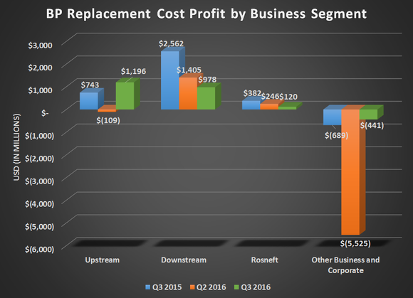 One thing that makes BP's results look slightly better than they are is the fact that its upstream results have some one-time gains baked into them. The company received a non-operating gain of $1.4 billion from an asset impairment reversal. Those impairments were the same thing that has been hitting earnings so hard in the past several quarters. As oil prices rise, though, some of those assets can be added back to the books. From a pure operations standpoint, though, upstream earnings were a bit weaker from an unusually high level of turnaround and maintenance work that lowered production by 2% compared to this time last year after adjusted for asset sales.