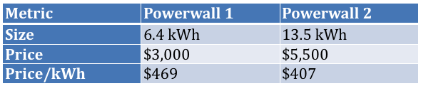 The second-generation Powerwall makes some slight improvements, increasing size and lowering cost. But the cost of Powerwall 2 is only 13% less than the previous generation on a per-kWh basis.