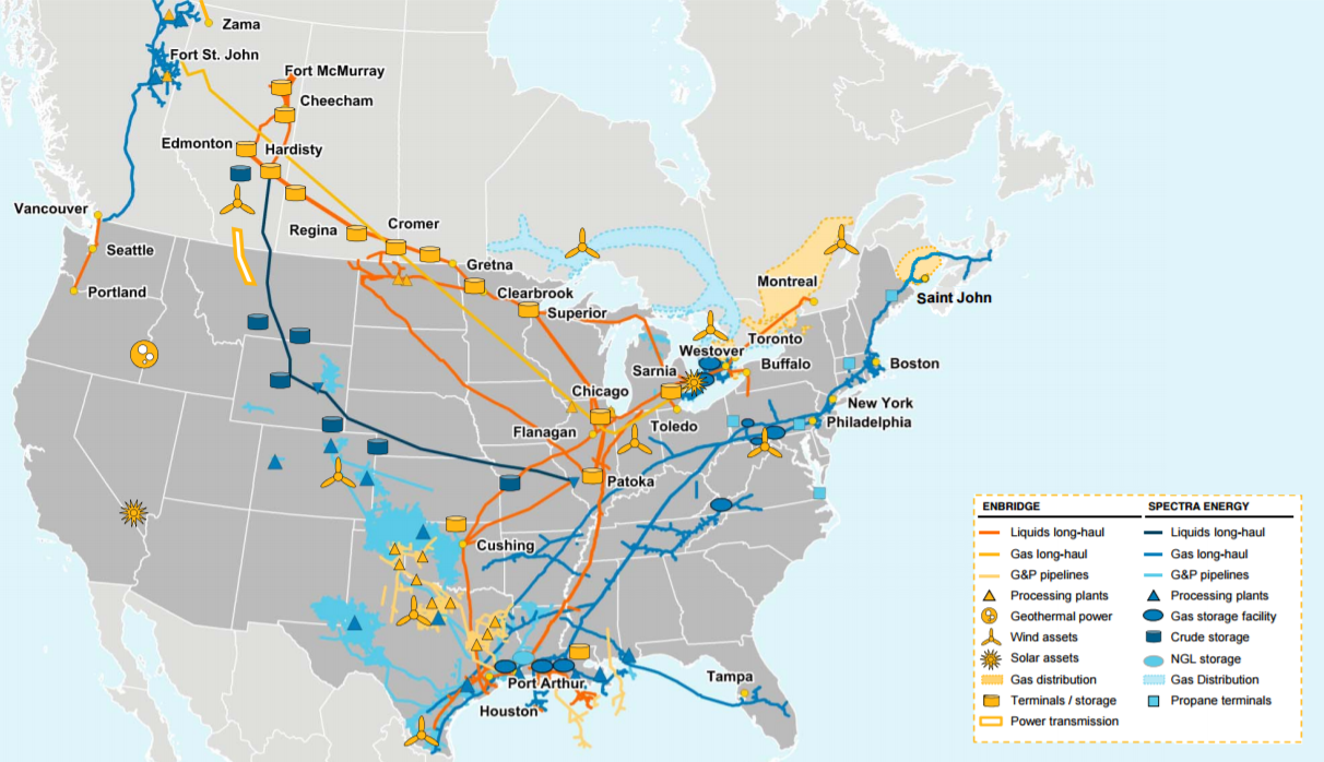 The big news that trumps just about everything else was the announcement that Spectra Energy and Enbridge would merge in a $29 billion deal. The combined company will have an absolutely enormous asset footprint that, when combined, integrates rather well together. The combination of the two will help connect some of the disparate parts of each company's pipeline networks.