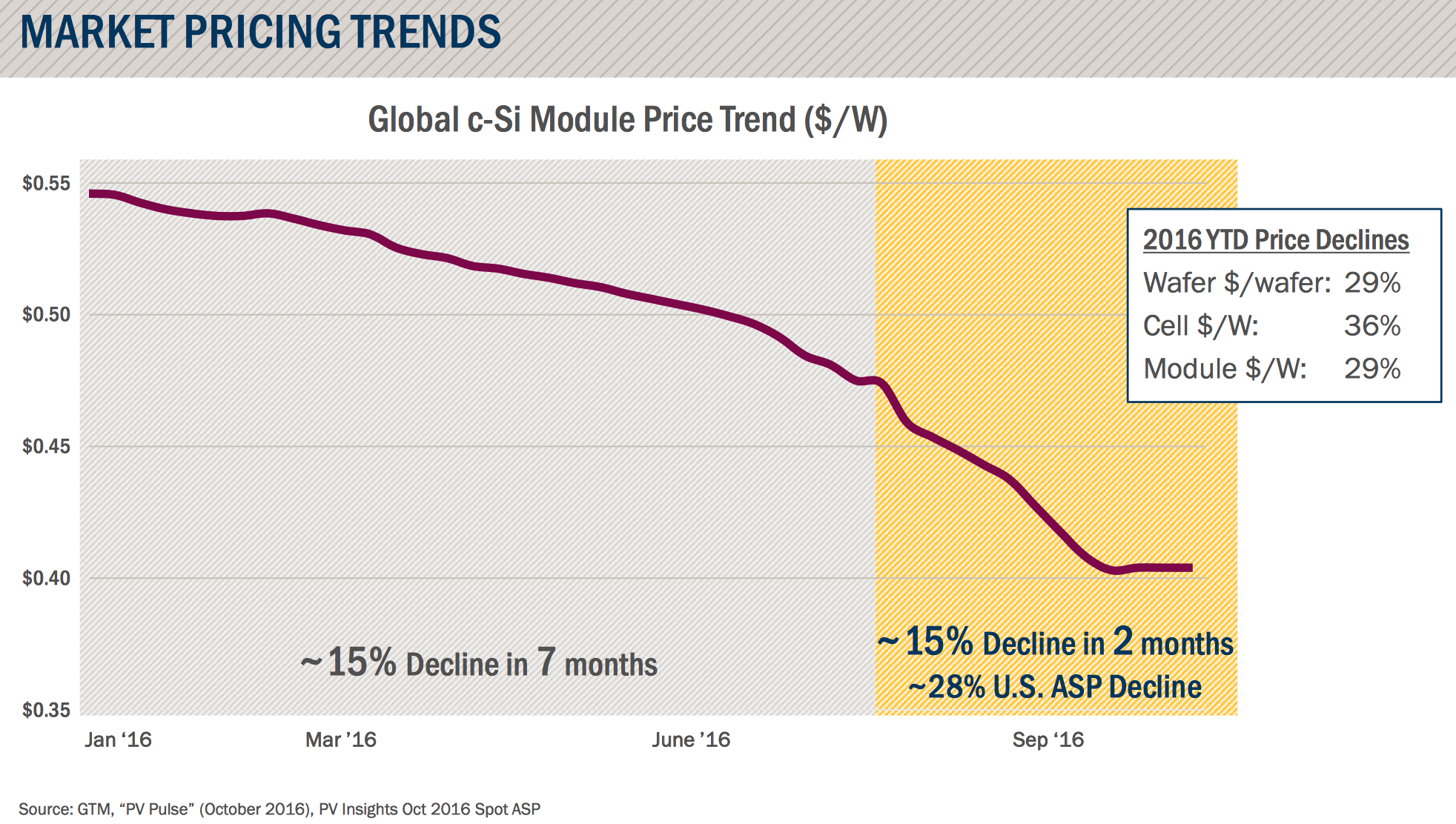 One of the negative trends for the solar industry is that module prices are dropping like a rock, and that will eventually crush margins for solar panel manufacturers. Just take a look at this chart from First Solar's earnings release.