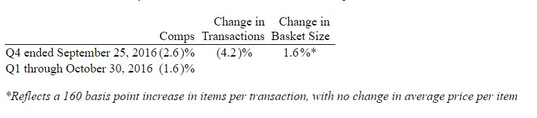Image source: Whole Foods Market 8-K filing dated Nov. 2, 2016.