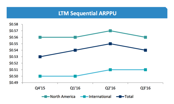 Average paid member count surged 33%, to 5.5 million, with Tinder ending the quarter with more than 1.5 million paid members. Yet average revenue per paying user decreased 8%, to $0.54, due to rapid growth of Match's relatively lower-cost apps, although the decline appears to be stabilizing in recent quarters.