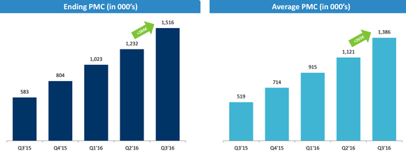 Match Group is on track to more than double ending paid member count (PMC) in 2016, and you can see the sequential strength below.
