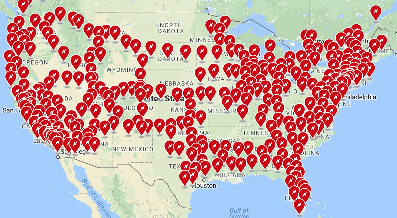 U.S. Supercharger network. Image source: Tesla Motors.