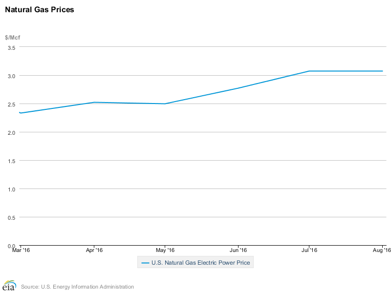 Natural gas prices have been moving higher. Image source: United States Energy Information Administration.