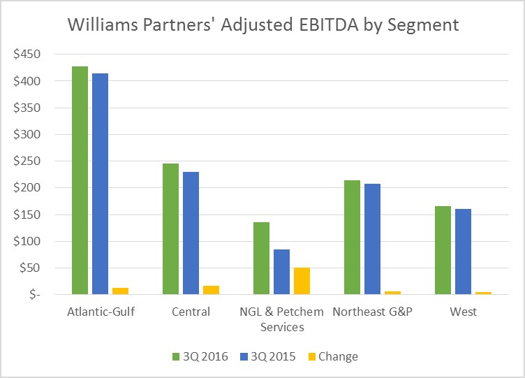 In millions of dollars. Data source: Williams Partners. Chart by author.
