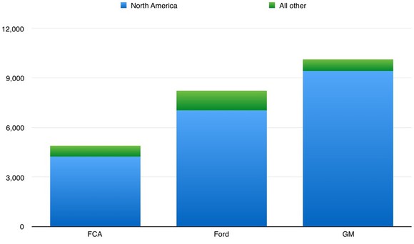 GM, Ford, and FCA are all global companies with huge operations around the world. But all three, more so than most of their global rivals, are still very dependent on profits in North America, most of which come from the United States.